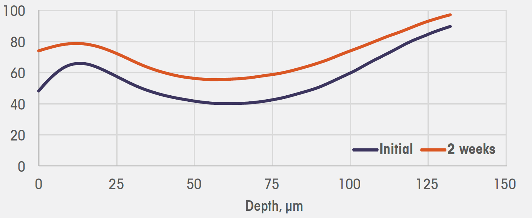 An exemplary depth profile up to 90% of the initial lesion.