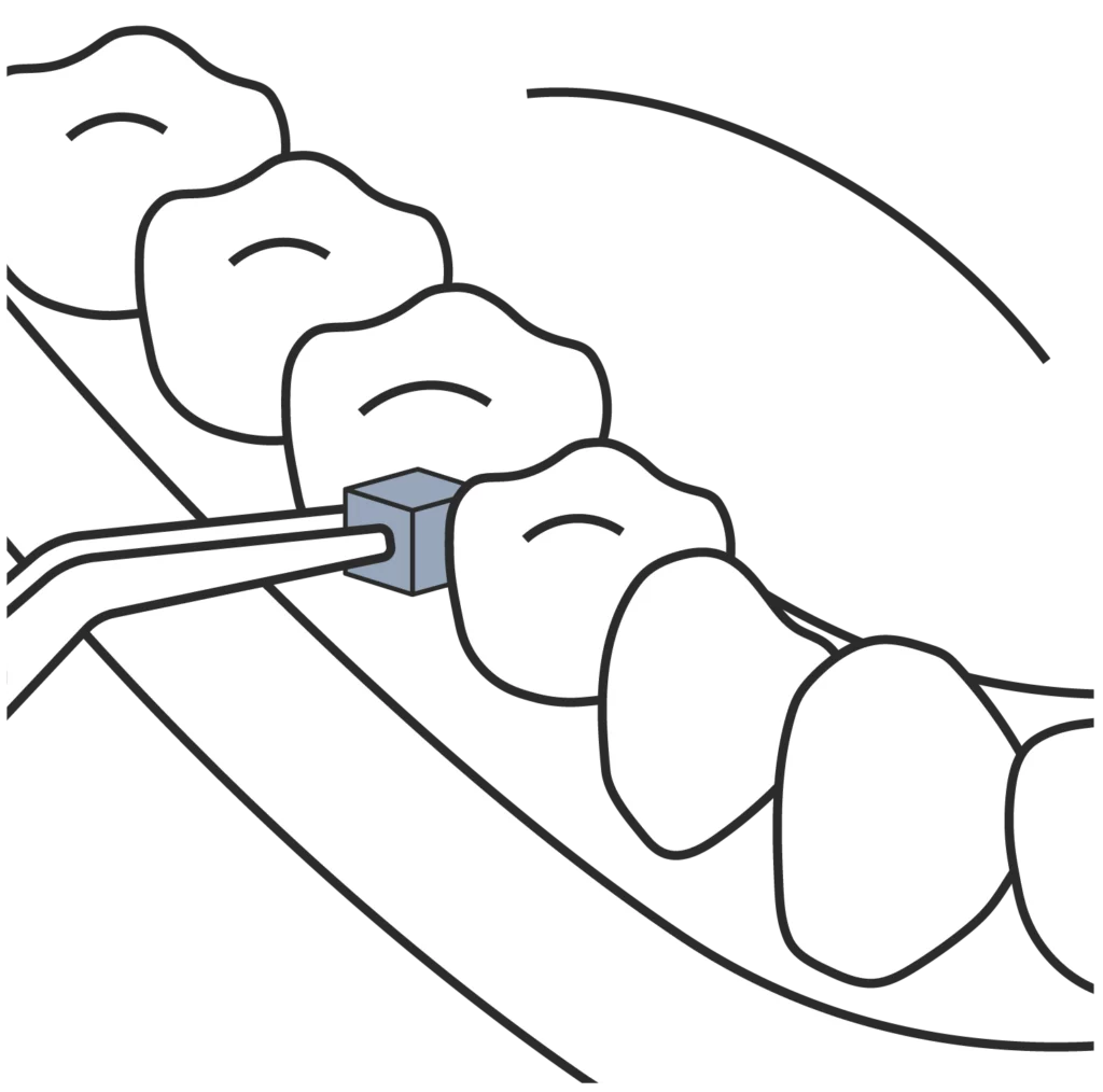 For interproximal application, apply from the lingual embrasure followed by the buccal embrasure.